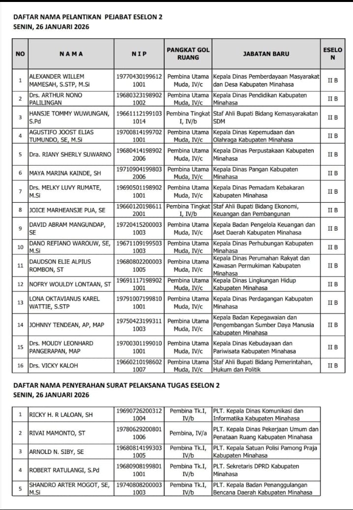 Momentum pelantikan ini menjadi tonggak peneguhan kepemimpinan Robby–Vanda dalam mengarahkan Minahasa menuju birokrasi yang solid, profesional, dan berdaya saing, sebagai fondasi utama pembangunan daerah dan pelayanan publik yang berkeadilan.