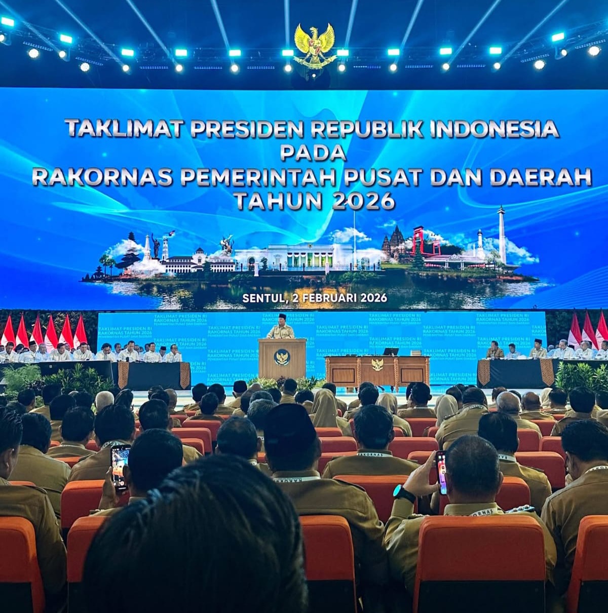Rakornas Pemerintah Pusat dan Daerah Tahun 2026 dibuka secara resmi oleh Presiden Republik Indonesia, Prabowo Subianto, yang memberikan arahan strategis dan penegasan kebijakan nasional kepada seluruh kepala daerah se-Indonesia.